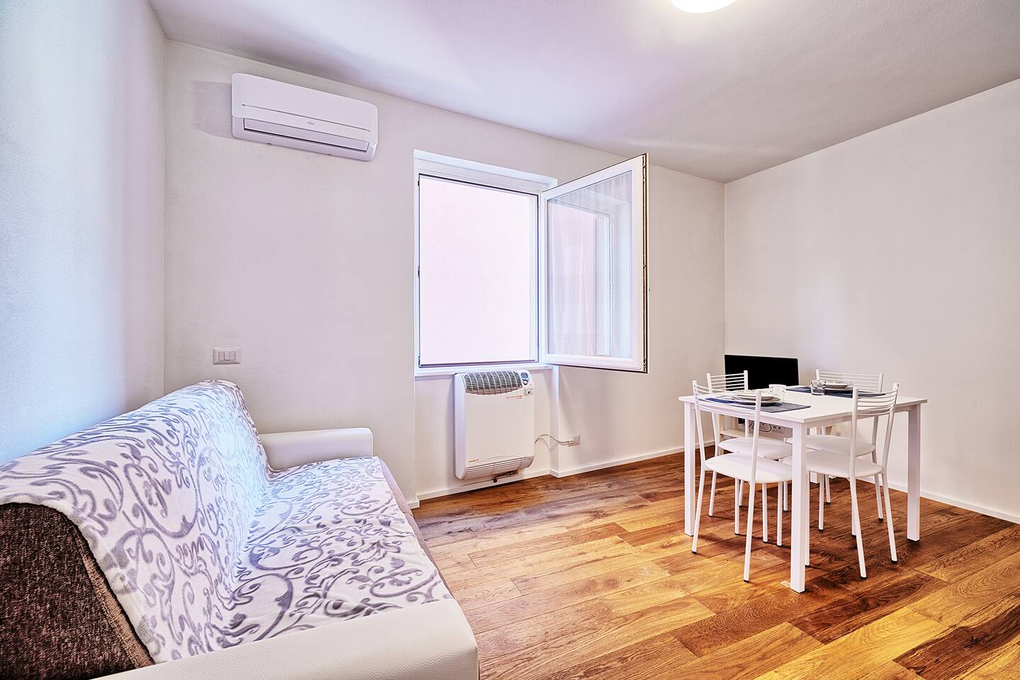 L'alloggio comprende: 🛏️ **Posti letto**: - 4 posti letto (camera da letto privata con letto matrimoniale + salottino con divano letto) 🍳 **Cucina**: - Completamente attrezzata e fornita di tutto il necessario 🛁 **Bagno privato**: - Dotato di bidet, box doccia e tutti i servizi igienici indispensabili 🛋️ **Salottino**: - Ideale per momenti di tranquillità